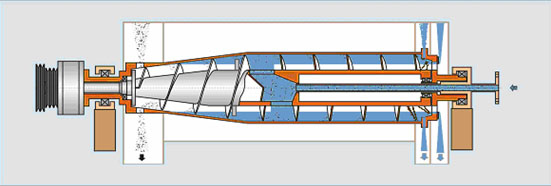 卧螺离心机采用的是在普通三相卧螺离心机结构尾部增加一个锥体及导流装置,采用这种双锥及特殊导流结构满足各种物料分离,特别是软渣分离,U乐国际通过不同物料的实验和使用得出结论,该机特殊结构具有适应能力强,分离系数高等特点,完全与国外的双锥卧螺离心机媲美。除此之外,还可以配置自动扭矩与微调差速控制、温度检测、震动检测等,从技术上确保离心机安全,正常、高效运行。
